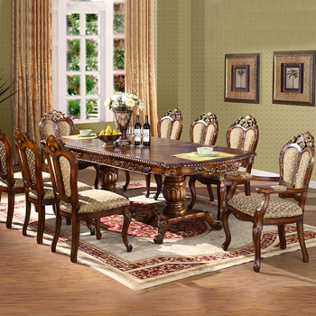 ヨーロッパの無垢材のダイニングテーブルチェアセット格納式長方形プルテーブルウエスタンダイニングセットヴィラホテルスクエアテーブル