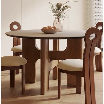 レストラン用ソリッドウッドダイニングテーブルセット焼結石トップ耐久性のあるモダンなデザイン