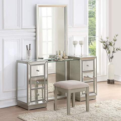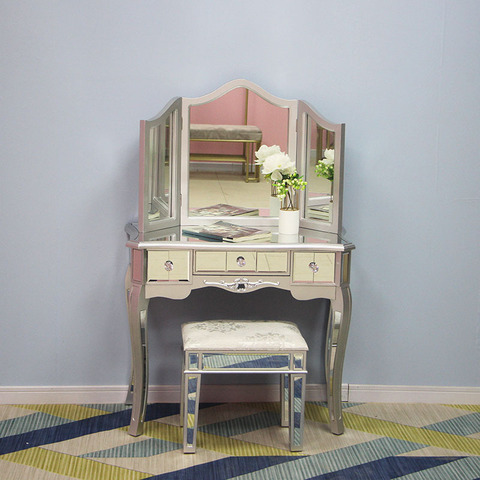 プロの手作りガラスミラーベッドルームバニティドレッシングテーブルホワイトミラーとスツールセット付き