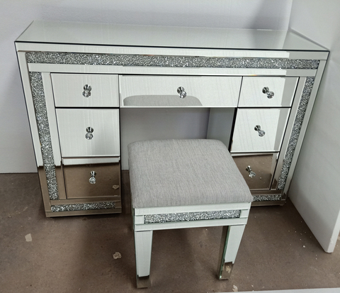 モダンな家庭用家具シルバーミラー11引き出しドレッシングテーブルクラッシュダイヤモンドバニティテーブル女の子の寝室用