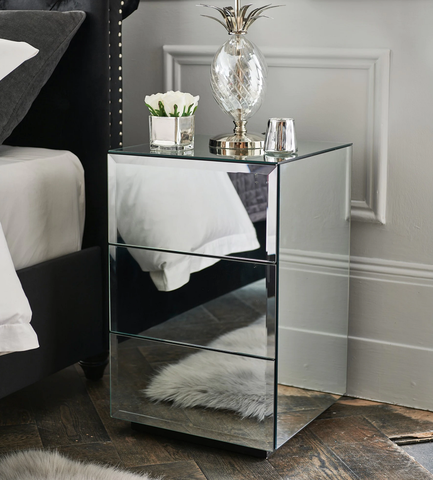 Cassettiera gioiello in vetro a specchio di lusso moderno con 3 cassetti mobili per camera da letto comodino comodino per Hotel di casa