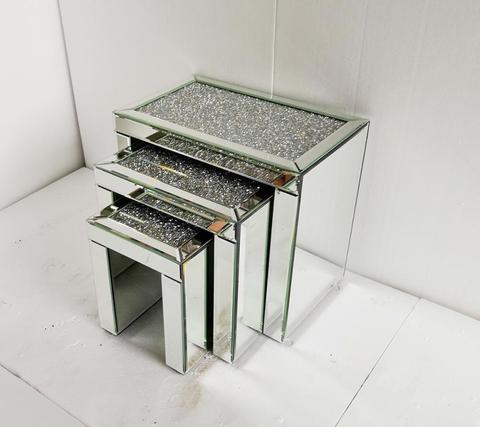 Schiacciato Cristallo di Diamante Set Di 3 A Specchio di Nidificazione Tavolino Set di Vendita Caldo